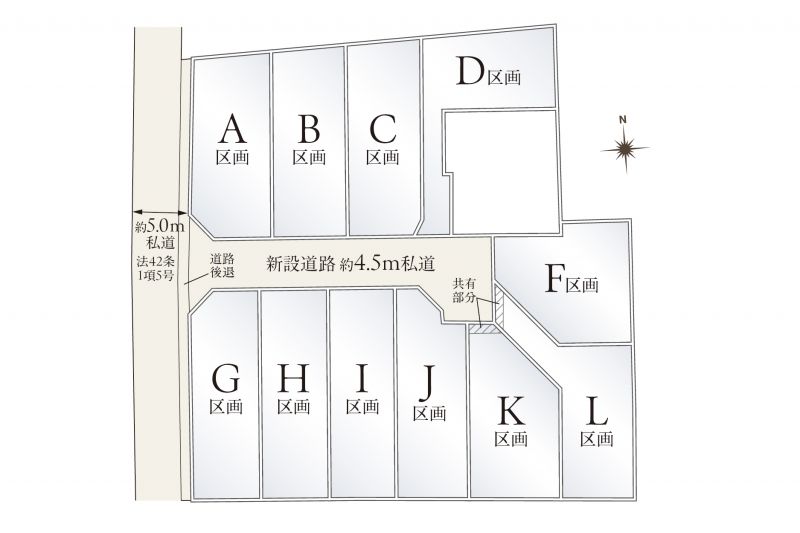 東西方向に造成される新設道路を囲む様に分譲される12区画の造成地は全ての区画が110㎡を超える土地面積。住居系の用途地域で容積率は100%ですので、よく見かける3LDKタイプの住宅よりも広く建てたり、また庭先やカースペースなどをお好みの広さにレイアウトしたり、ご家族様の希望を沢山取り入れたマイホームが設計できそうです。