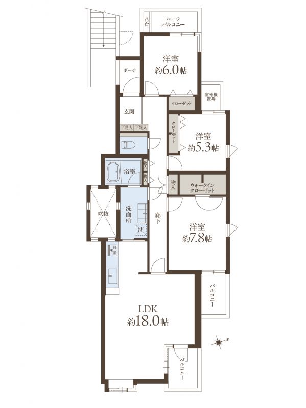 間取タイプ | 3LDK+WIC+ルーフバルコニー |