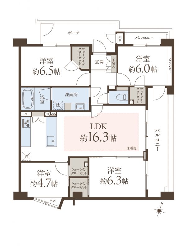 専有面積:86.87m2 バルコニー面積:15.36m2