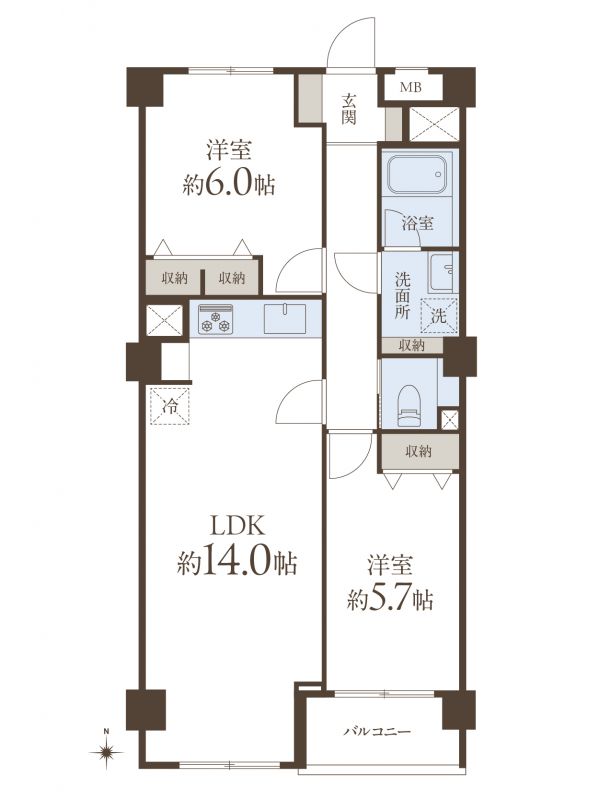 専有面積:57.97m2 バルコニー面積:3.51m2