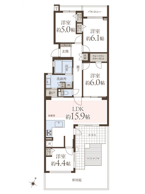 | 間取タイプ | 4LDK+WIC+テラス |
