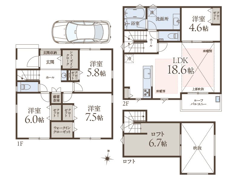 | 間取り | 4LDK+SIC+WIC+固定階段ロフト+カースペース1台 |