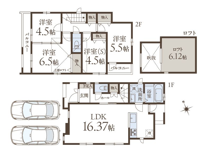 4LDK+ロフト+備蓄倉庫+カースペース2台