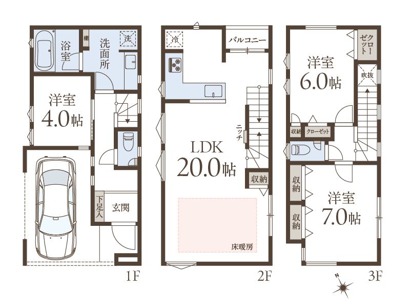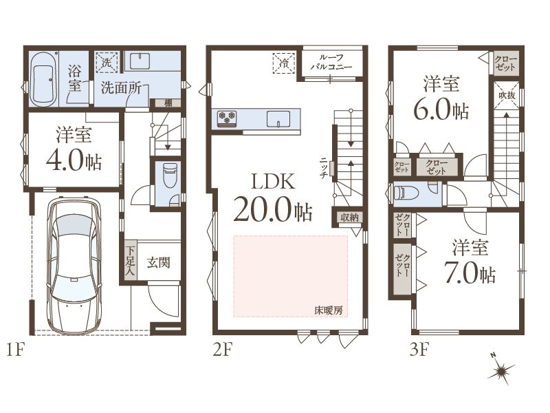 敷地面積:53.4m2 建物延床面積:104.95m2