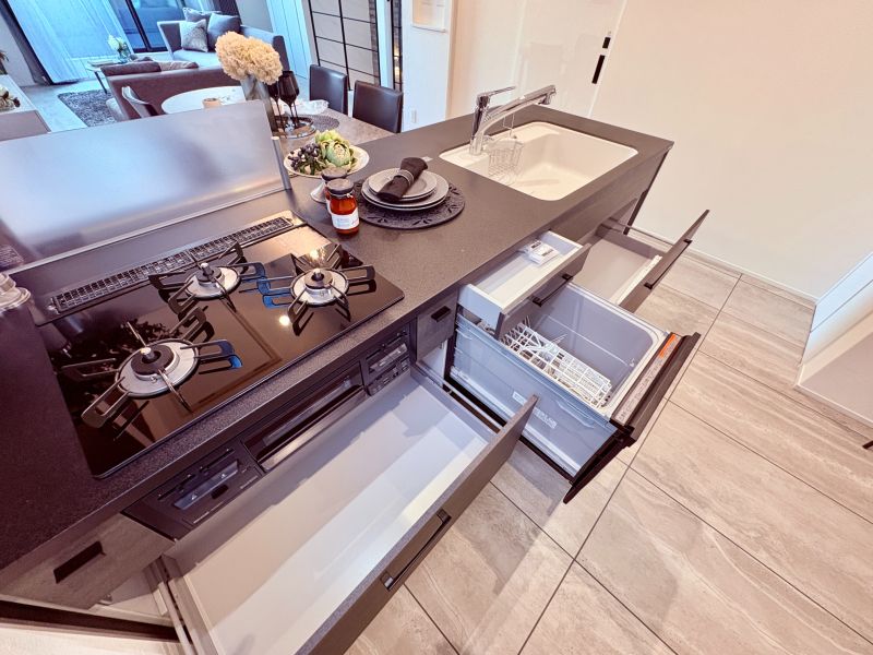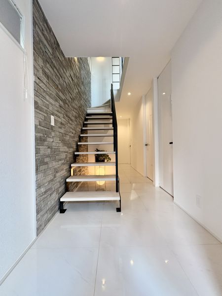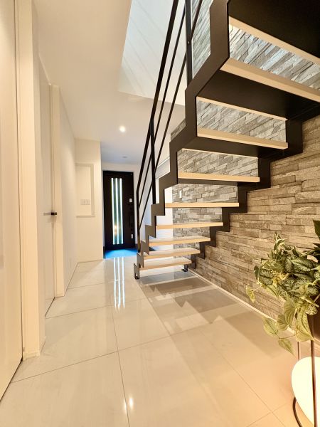 建物仕様 | ◆スケルトン階段 ◆タイル張り 床:LDK・玄関Hall・Ent・洗面脱衣所床、壁:階段横壁 ◆ハイドア 全部屋 ◆カースペース並列2台可能(車種による) ◆全居室収納あり+小屋裏収納あり ◆2Door1Roomあり ◆食器洗浄乾燥機 ◆タンクレストイレ |