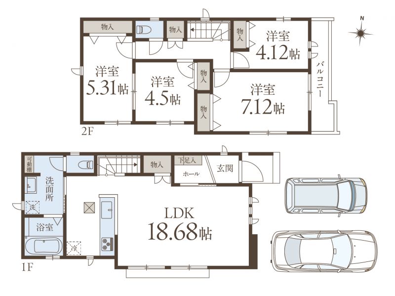 95㎡の大型プラン広めの主寝室に子供部屋は3つ、2つの部屋を引き戸で繋ぐ3→4LDKの可変タイプ、お子様が小さいうちは繋げてプレイルーム、大きくなったら分けて勉強部屋など用途は様々です。カースペースが2台分、吉祥寺にもアクセス出来る便利なエリアにまもなく誕生です。