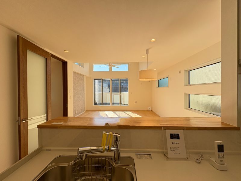 駅から5分の好立地に、高級感あふれる邸宅が完成しました。思わず家事をしたくなるような洗面台やキッチン。青空の差し込むリビング。ゆったりとくつろげる主寝室。どこを切り取っても絵になります。特に、 リビングからの景観は、一度体験していただきたいです。
