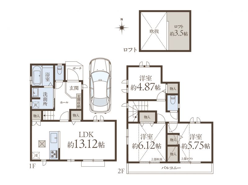 | 間取り | 3LDK+ロフト+カースペース1台 |