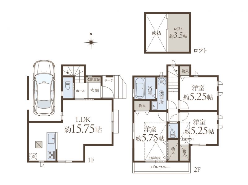 | 間取り | 3LDK+ロフト+カースペース1台 |