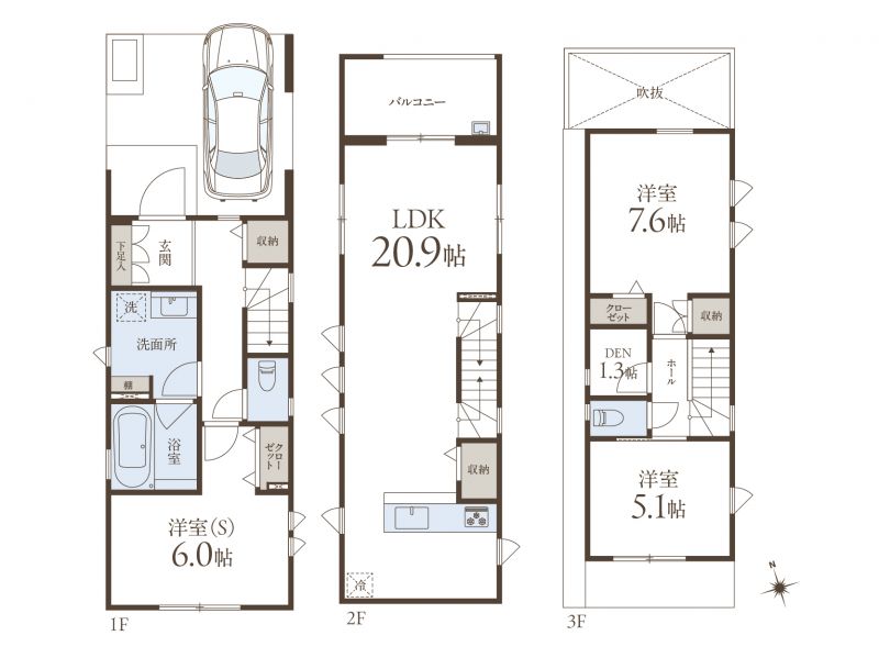 3LDK+DEN+カースペース1台