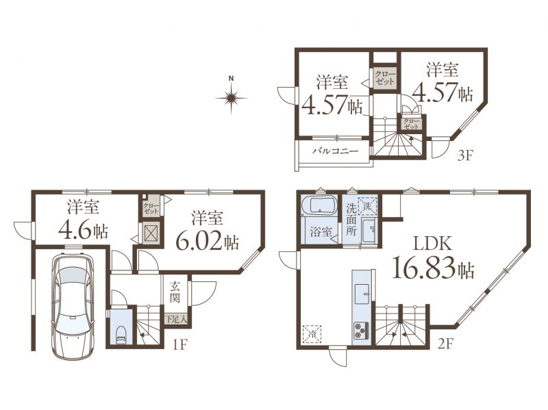 | 間取り | 4LDK+ビルトイン車庫1台 |