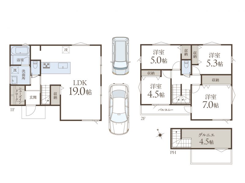 4LDK+SIC+小屋裏収納+カースペース2台分
