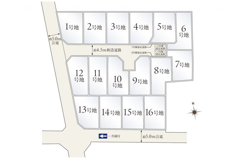 | 備考 | ●私道持分/有り(新設道路:191.29㎡×各1/12) ●協定道路/敷地面積に含む(5号地:3.11㎡、6号地:10.20㎡、7号地:10.20㎡、8号地:3.11㎡) ●太陽光発電 |