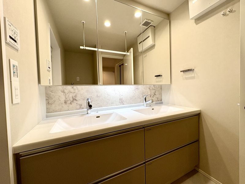 | 建物仕様 | ◆食器洗い乾燥機 ◆タッチレス浄水器一体型シングルレバー水栓 ◆洗面化粧台ダブルボウル ◆浴室換気暖房乾燥機 ◆ユニットバス1620サイズ ◆ガス温水式床暖房 ◆スカイバルコニー ◆Loe-E複層ガラス ◆タッチレスキー ◆スマートフォン連動テレビドアフォン |