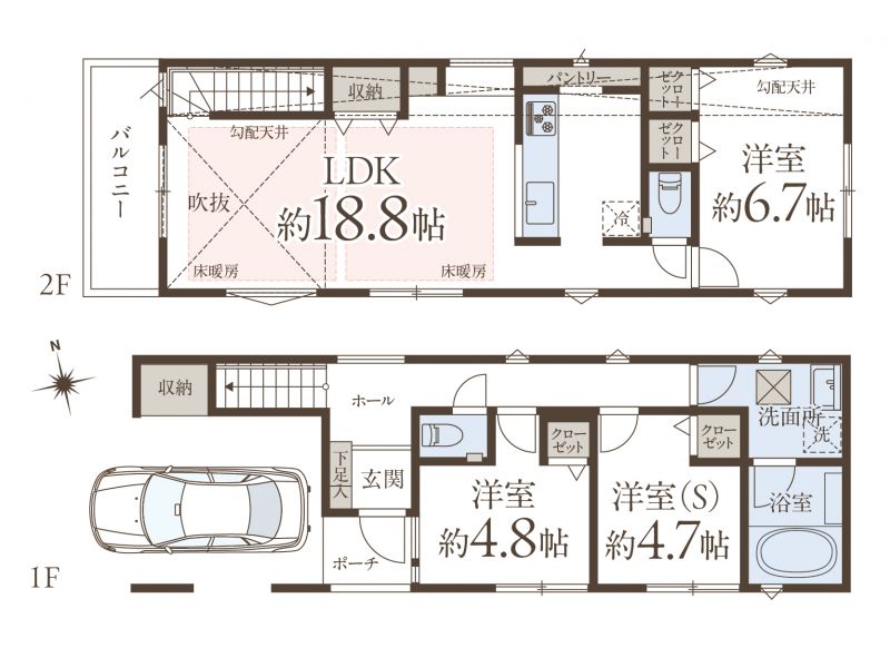 3LDK+パントリー+カースペース1台