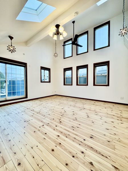 | 建物仕様 | ◆無垢床材(リビング) ◆吹抜け(リビング) ◆2階リビング ◆並列2台駐車可(車種による) |