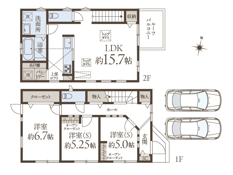3LDK+パントリー+ロフト+カースペース2台